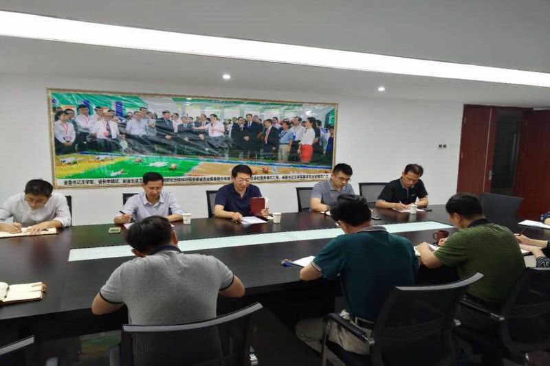 调研推进会上,刘超一行听取了省农服公司近期工作进展情况汇报,着重调研了农服烘干项目建设、子公司布局、小岗农服工作开展、加强党建等重点工作情况,热切关注烘干项目在华阳河农场午收中发挥的作用、农服创新徽农卡业务进展情况。