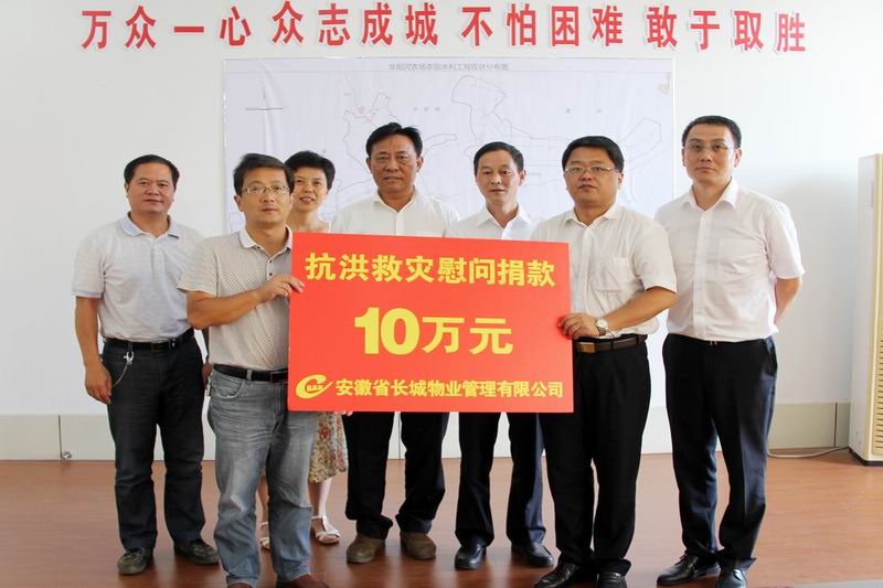 今年入汛以来,安徽农垦华阳河、皖河、敬亭山三场发生特大洪灾。长城物业公司一直牵挂着农垦汛情灾情,近日召开专门会议研究决定:拨出20万元专款捐助兄弟农场抗洪救灾。
