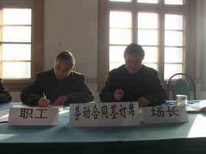 1995年1月,《中华人民共和国劳动法》正式实施, 1996年,全省农垦系统全面推行全员劳动合同制, 企业劳动关系发生了深刻地变化。10年来,劳动合 同制度对深化企业劳动用工制度改革,构建劳企双 方和谐的劳动关系,维护劳动者和用人单位的合法 权益发挥了重要作用。为切实做好全场职工劳动合 同的续签工作,场于11月中旬就此项工作进行了宣 传和部署。
