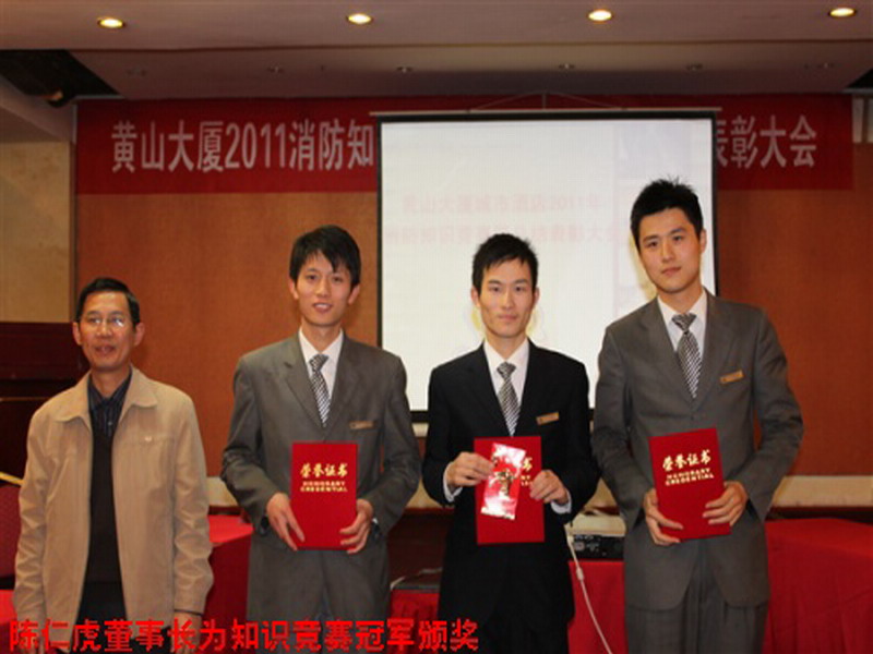 为了贯彻落实上级关于开展清剿火患的工作要求,今年11月,安徽农垦黄山大厦城市酒店开展全员安保技能比赛暨消防安全月活动,取得了一系列活动成果,并于12月3日下午举行消防知识竞赛暨消防安全月总结表彰大会。省农垦集团副总经理、黄山大厦酒店管理有限公司董事长陈仁虎,酒店管理公司总经理王健等领导同志出席会议。