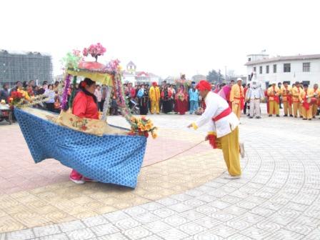 在热闹的气氛中,演员们表演了舞狮子、游旱船、猪八戒背媳妇、泗州戏等多个职工群众喜闻乐见的传统节目,他们精彩的表演充分表达了农场人民丰收的喜悦心情,整场花舞展示了龙亢农场各项事业蒸蒸日上的发展形势,花舞吸引了周边数百名群众前来观看。