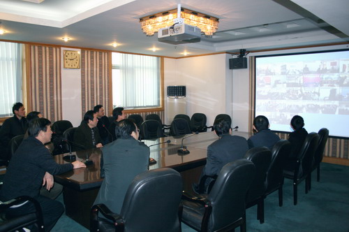 经过近一个月来紧张努力,继农垦OA内部办公网投入运行之后,安徽农垦集团公司视频会议系统全部安装调试完毕,1月2日上午正式开通。集团公司全体领导在主会场通过视频与垦区各分会场的企业负责人和部分机关工作人员见面。集团公司党委书记、董事长田文俊和总经理李卓民分别向分会场的同志表示新年祝贺,并鼓励农垦干部职工在新的一年里更奋发有为,再创新业绩。同时,通过视频系统向全垦区播放了刚刚摄制完成的农垦电视宣传片——《奋进中的安徽农垦》。会议视频系统的成功安装,标志着农垦办公水平和条件迈上了一个的台阶。图为主、分会场。