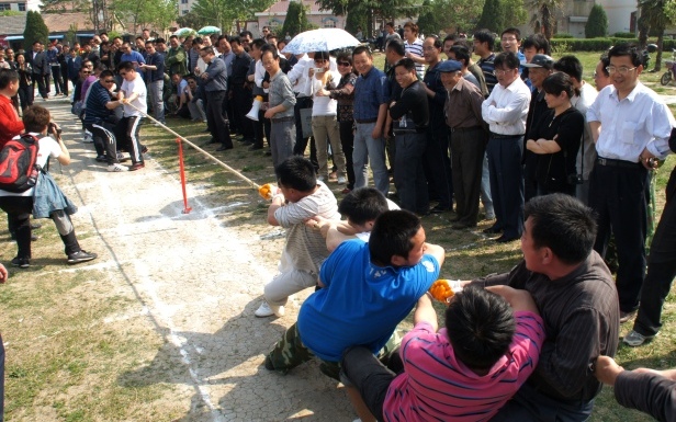 4月28日下午,男子拔河比赛在场部休闲广场开赛,来自各基层单位的10支代表队踊跃参赛。比赛场面热烈,气氛高涨,参赛队员团结一致,取得了一个又一个的好成绩。啦啦队的欢呼声、加油声此起彼伏、响彻赛场,洋溢着热烈、和谐、友好的气氛。