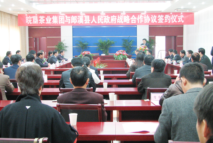1129上午,皖垦茶业集团与郎溪县人民政府举行了战略合作协议签约仪式。省农垦集团董事长、党委书记田文俊、副总经理程军,宣城市委常委、副市长黄东升,郎溪县委书记邵建华、县长余宏汉,以及皖垦茶业集团、十字铺茶场、皖垦棉业集团、省农垦土地分局、郎溪县委县政府有关部门领导同志出席仪式。郎溪县副书记刘家和主持了签约仪式。