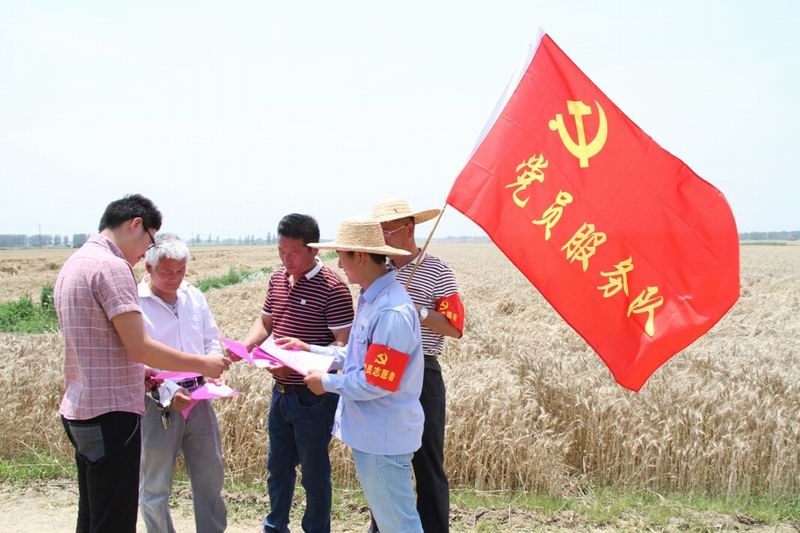 连日来,场机关党员干部纷纷胸戴党徽走向地头,向种植户宣传秸秆禁烧的要处、综合利用的益处,提醒最新天气情况,让广大职工群众自觉参与到禁烧行动中来,并合理安排好午季收种时间。为保证全场零火点,以支部为单位组成的党员服务队驻扎在场属10个农业分场和龙亢试验区潘褚两村,佩戴着党员志愿者袖章,行走在已收完的麦地里,督导大家第一时间粉碎秸秆,时刻防范出现火点;抢粮保种队伍中,各经营性党员服务队活跃在收粮现场,忙着检测水分、填登记卡,缩短了职工售粮等待时间,保障了种粮及时入库;医院党员服务队奔走到每一块麦地,送去防暑药品及小贴士,让种植户们以最佳身体状态投入午收夏种中。党员农机手们亮身份,当志愿者,卯足劲争当党员示范岗标兵