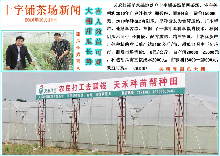 十字铺茶场引进种植大棚甜瓜效益可观